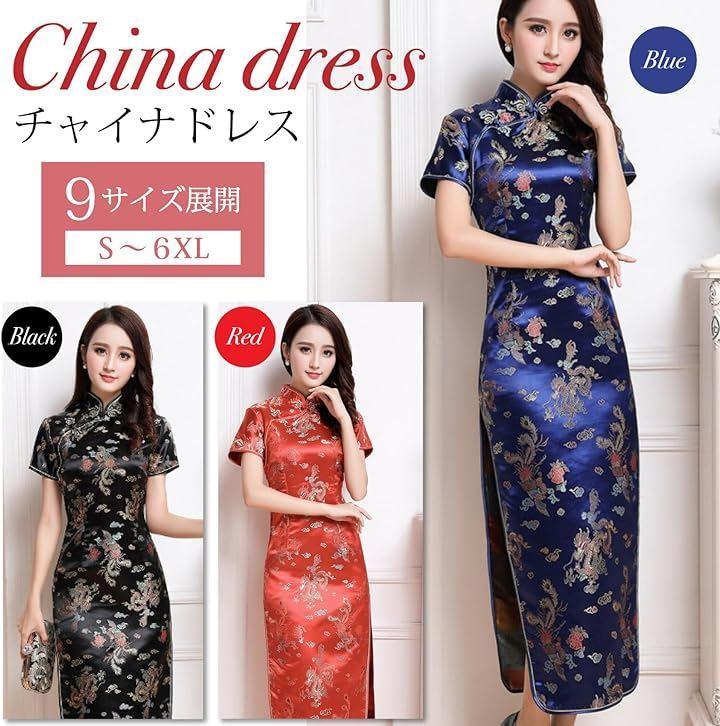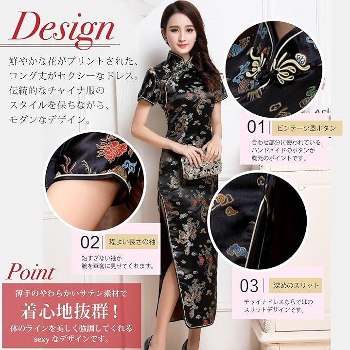 「チャイナドレス」 鮮やかな花がプリントされた、ロング丈がセクシーなチャイナドレス。