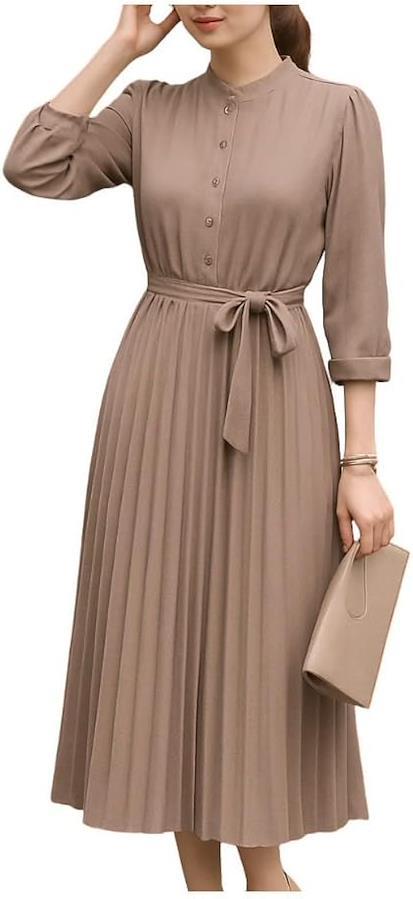 「1枚でキマる上品シルエット」ふんわり広がるAラインで女性らしさ引き立つ。