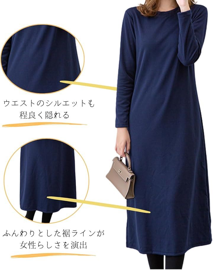 「商品の概要」スウェットワンピース ロング レディースは、カジュアルな印象と着心地の良さを兼ね備えたtシャツワンピース。