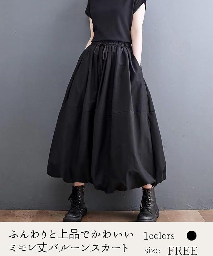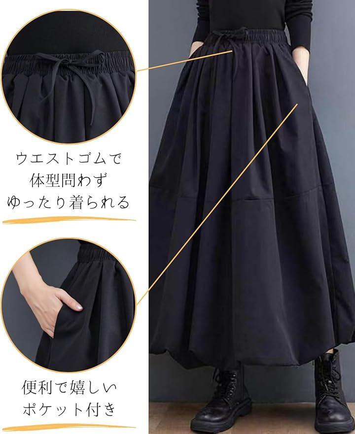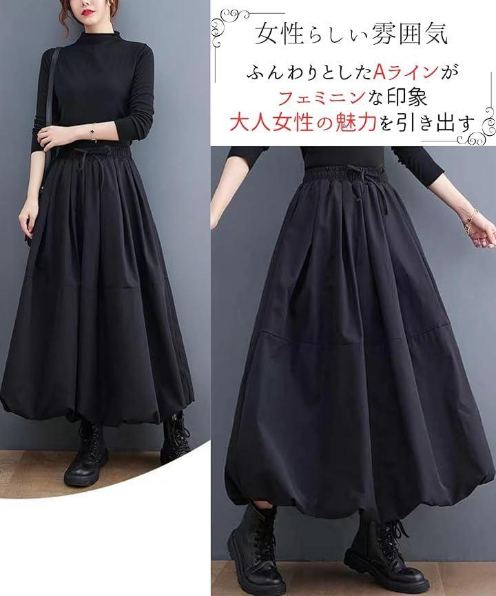 「商品の概要」大人可愛い バルーンスカートが登場。シンプルな黒 ブラックで仕上げたレディース向けアイテム。