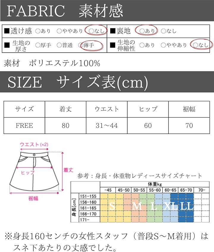 「素材」ポリエステル100% 「カラー」黒「サイズ(cm)」FREE 着丈80/ウエスト31-44/ヒップ60/裾幅70