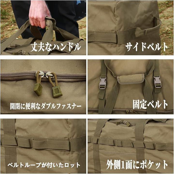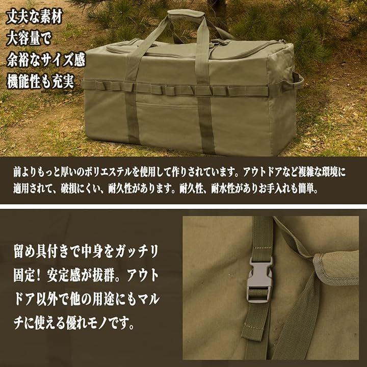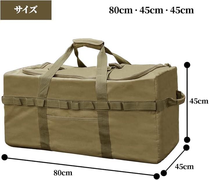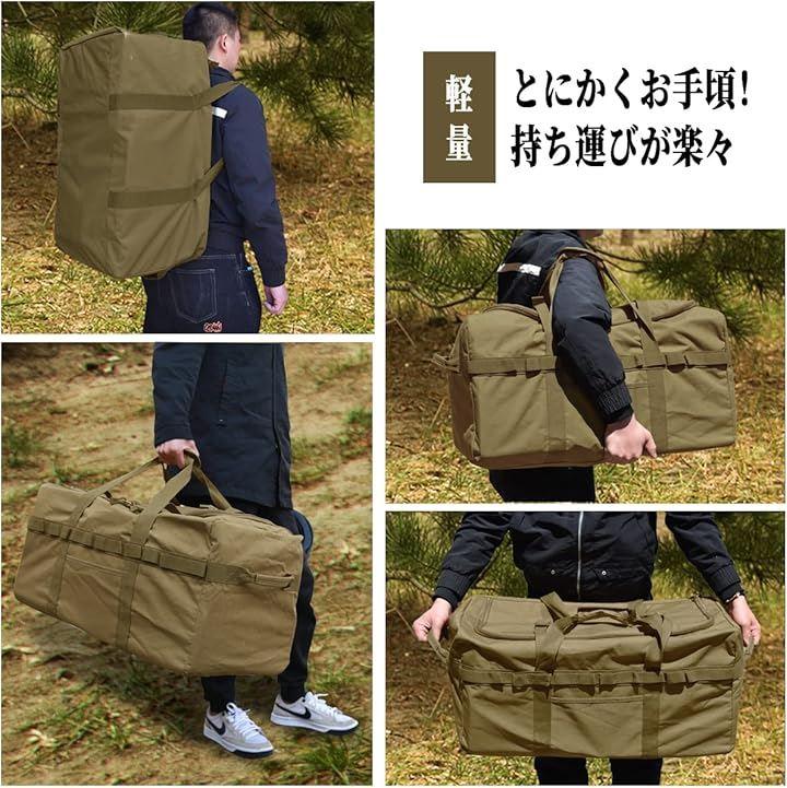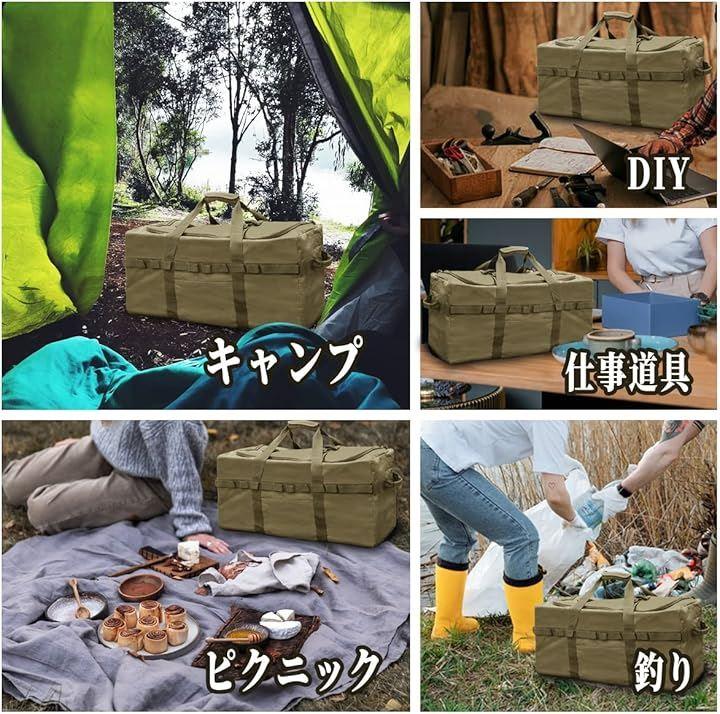 大型収納 トートバッグ キャンプバッグ 大型収納カバン ビッグバッグ 大容量アウトドアバッグ キャンプ道具収納 大型収納袋 L 80x45x45カーキ