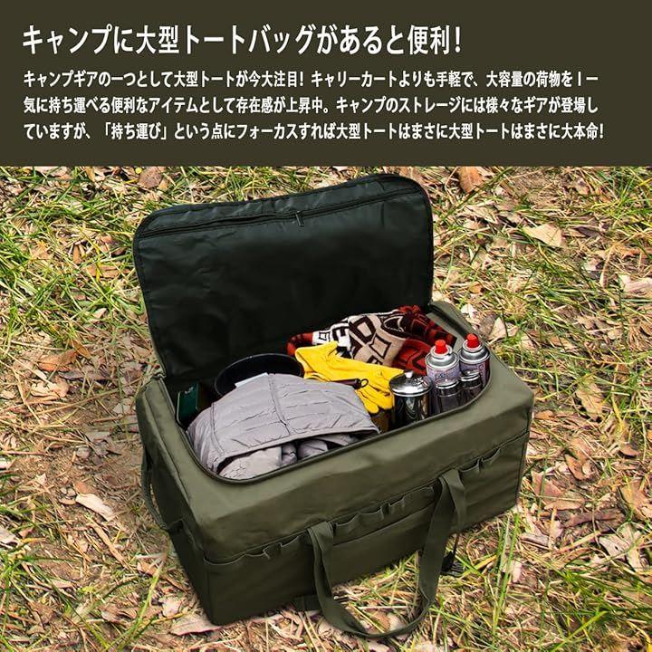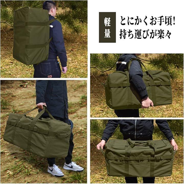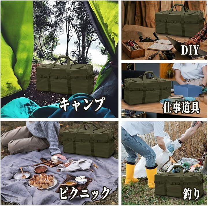「大容量キャンプ道具収納」焚き火台、薪ストーブ、七輪、薪 広葉樹、薪ばさみ、テント ストーブ、手斧、薪割り台、薪グリル、アウトドアコンロなど様々なキャンプ道具を収納できる防水帆布トートバッグです。
