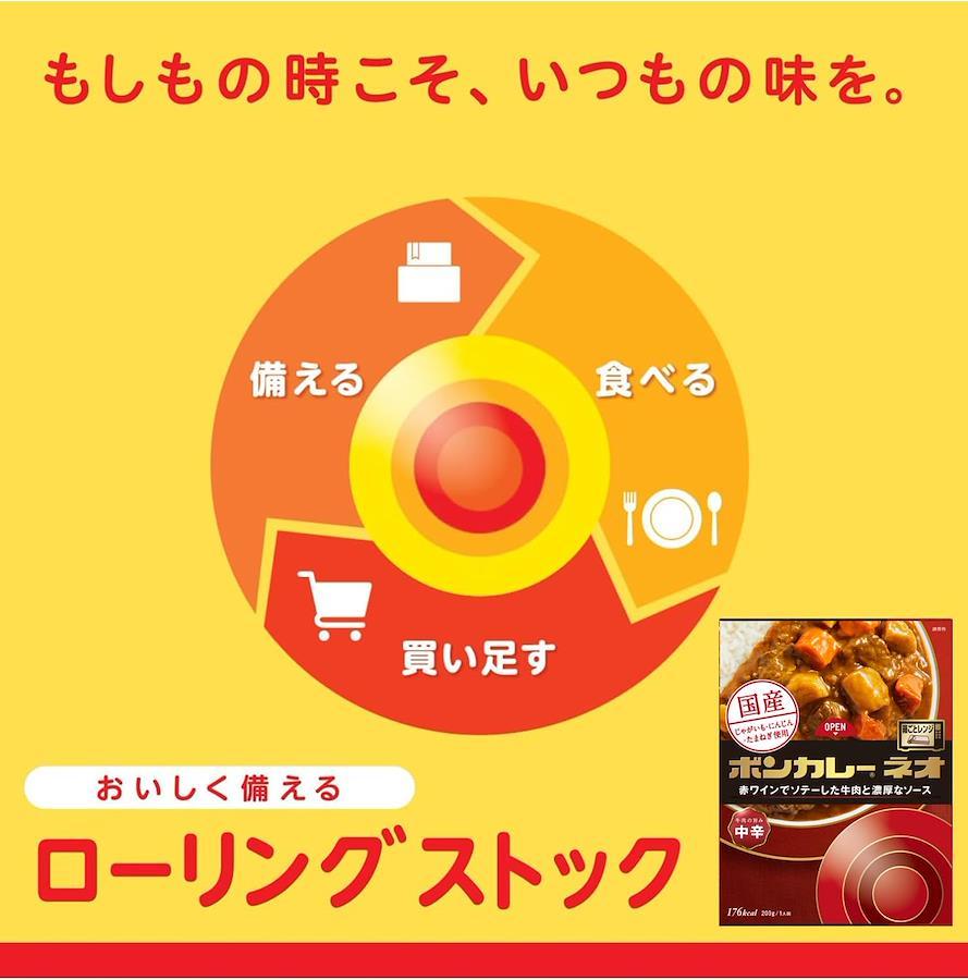 ****** いつもの食材で、もしもに備える! ******日々の食事にも、長期保存にも便利なレトルトカレー。日常生活のなかで消費しながら、つねに一定量の食材を備蓄しておくローリングストックにもどうぞお役立てください。