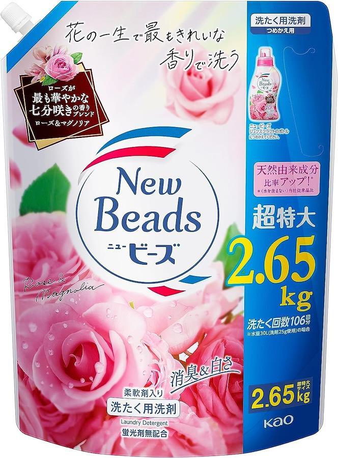 【大容量】ニュービーズ リュクスクラフト 消臭&白さ 七分咲きローズの香り配合 柔軟剤入り ローズ&マグノリアの香り 詰替え用 2%カンマ%650g×2個 オリジナルカード付き