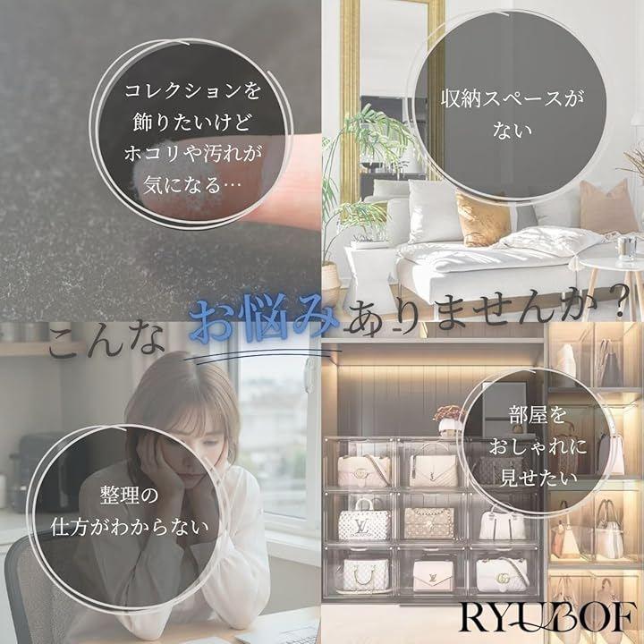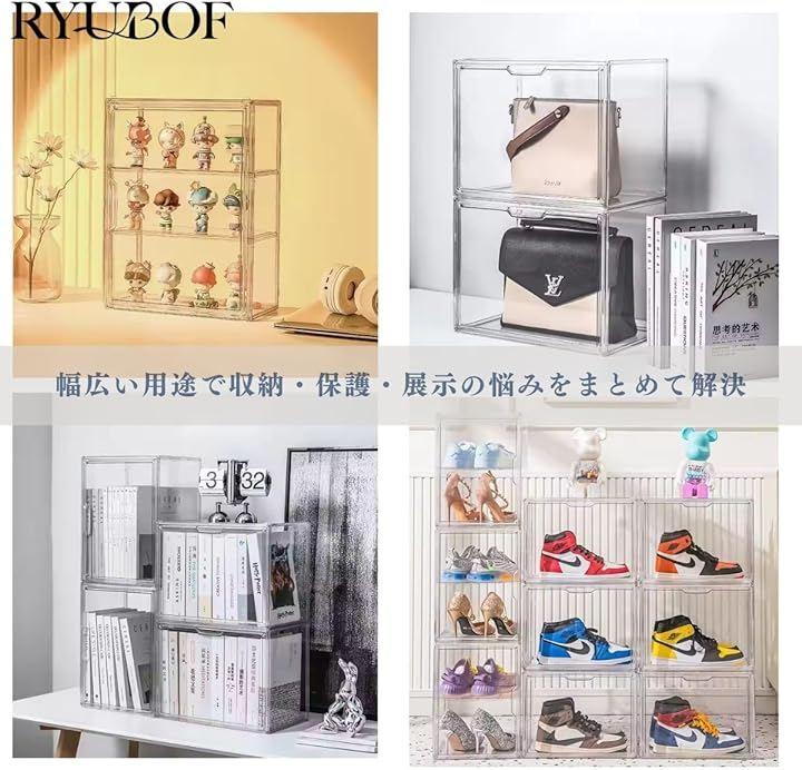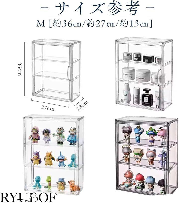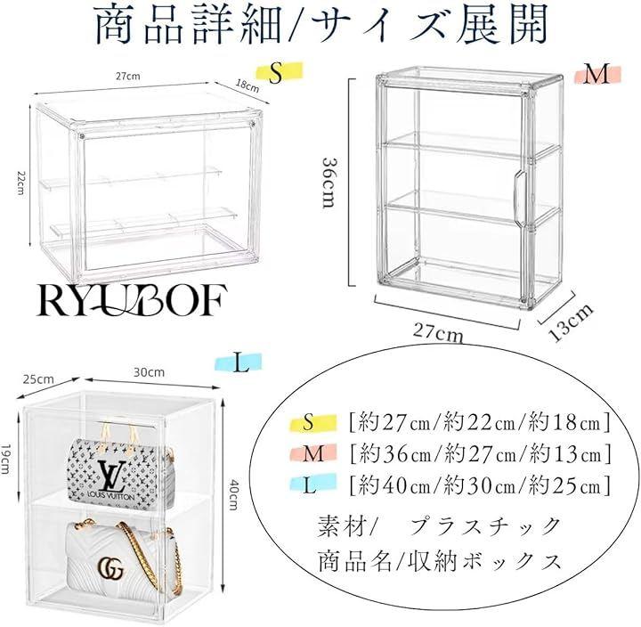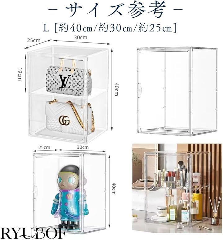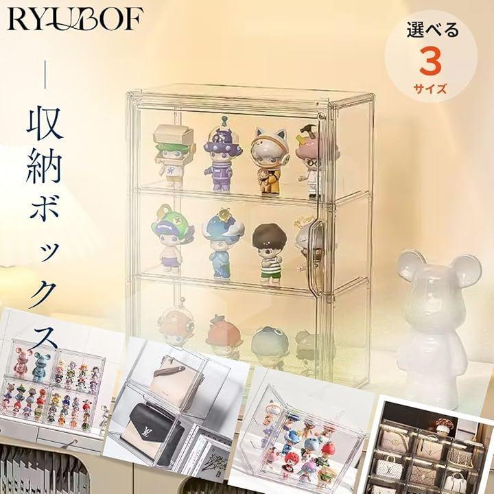 「フィギュアケースで広がる大容量収納」 フィギュアケースは40x30x25cmなどの大サイズ設計で、フィギュアやおもちゃ、靴、バッグ、本やアクセサリー、化粧品まで幅広く収納でき、透明展示ケースとして飾る楽しみをプラスしながら収納力にも自信があります。