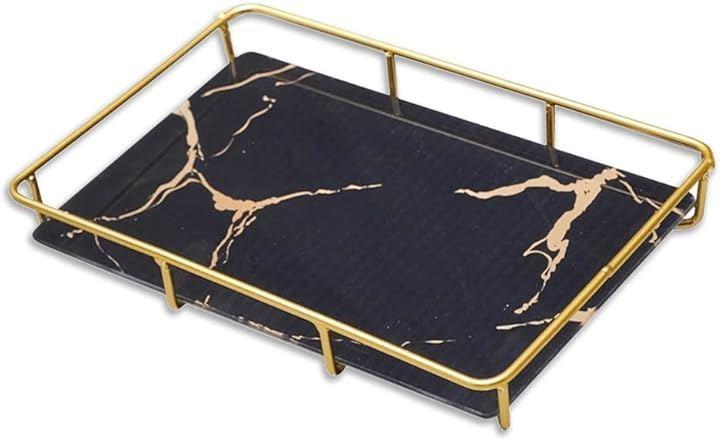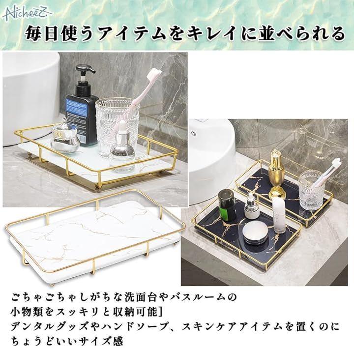 「大理石柄のモダンな収納トレー」大理石柄プレートとゴールドフレームの組み合わせがオシャレな洗面台収納トレーです。