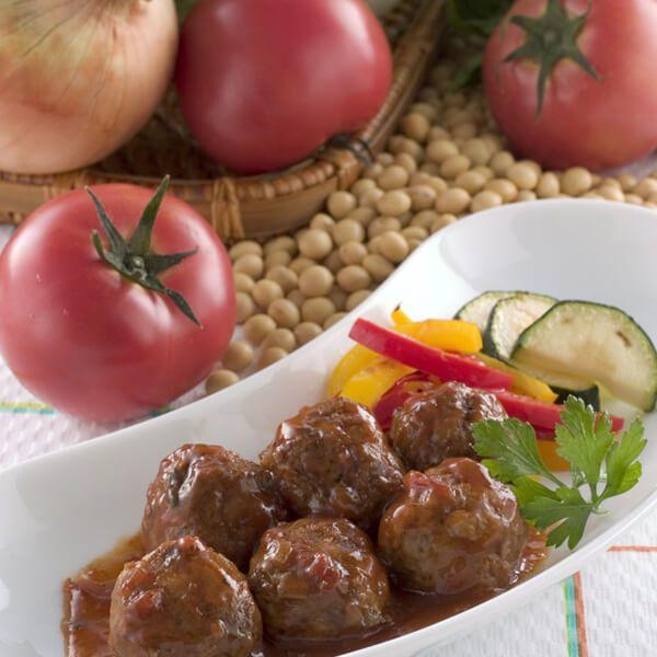 三育フーズ完熟トマトソース野菜大豆ボールは、畑のお肉といわれる大豆にキャベツと玉ねぎをたっぷり使って作った野菜大豆ボールに、完熟トマトをたっぷり使い、ハーブを加えてイタリアンソースの味に仕上げました。