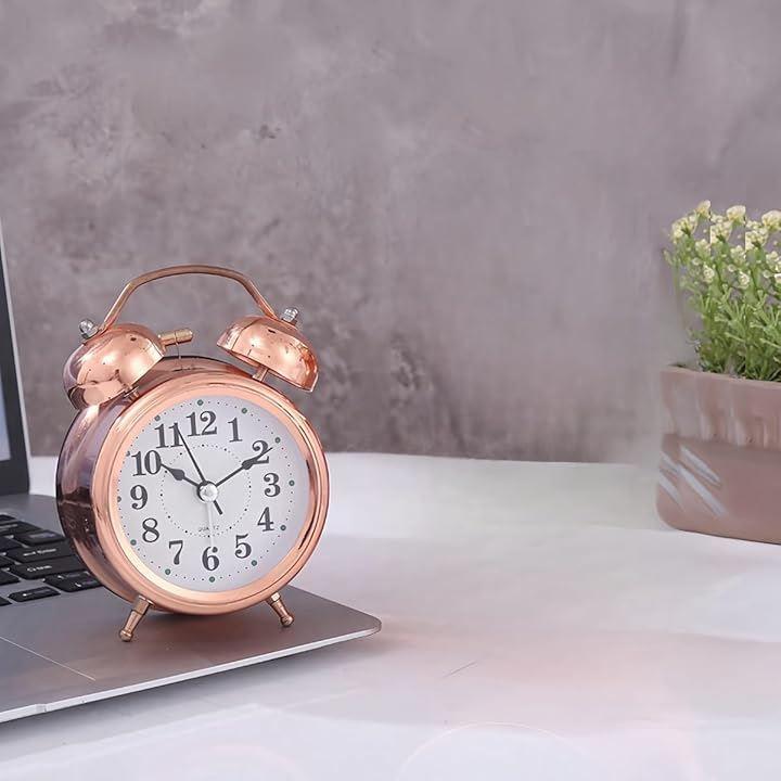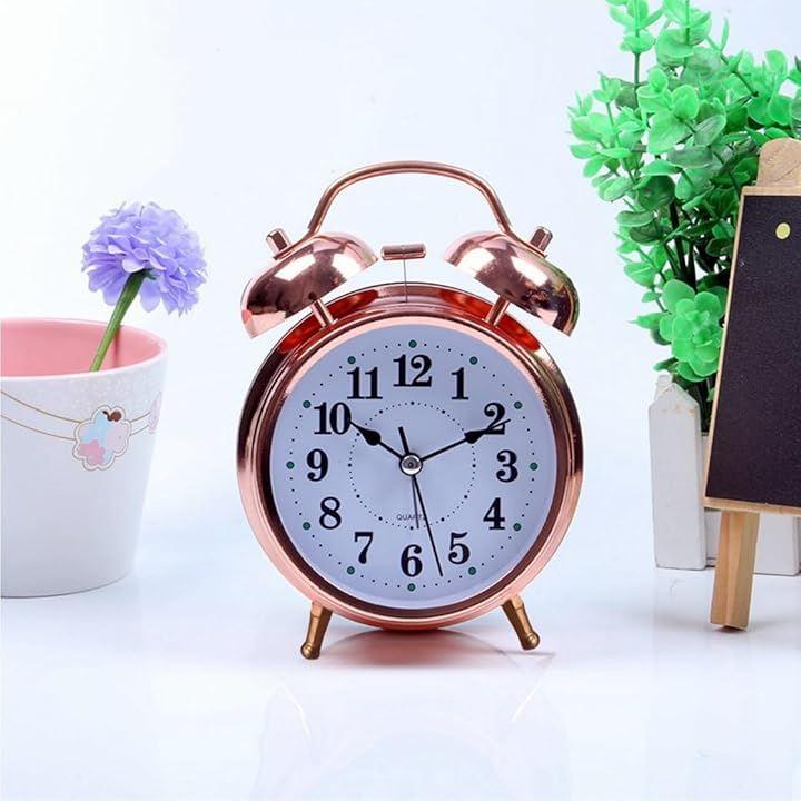この大音量 おしゃれなアナログ 振動 目覚ましは、双鈴があり、ハンマーが左右のベルを叩きます。