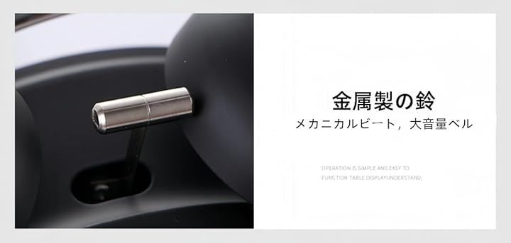 この爆音めざまし時計は連続秒針とアナログ表示によって正確な時間を示します。
