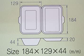 サイズ:縦129×幅184×容器厚さ44mm(蓋厚さ20mm)重量:約21g(1枚当たり)主原料:非木材パルプ対応調理機器:電子レンジ(オーブン不可)耐性:耐水性・耐油性(熱湯不可)