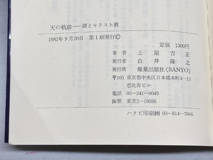 商品名:天の軌跡 暦とキリスト教 土屋吉正 燦葉出版社(SANYO)