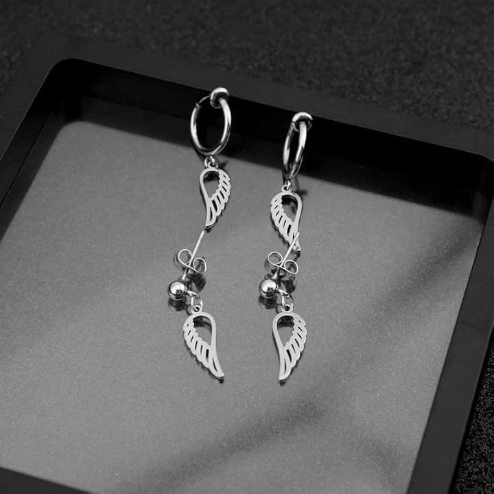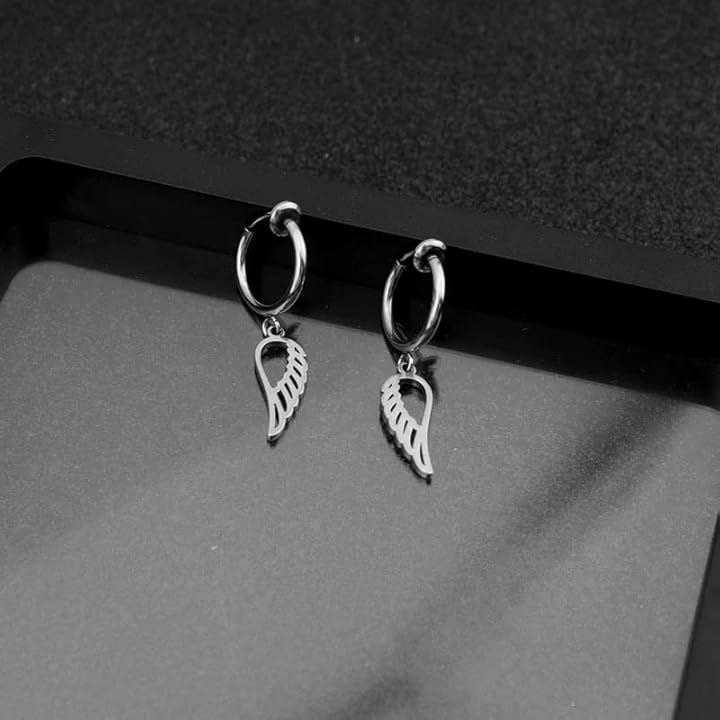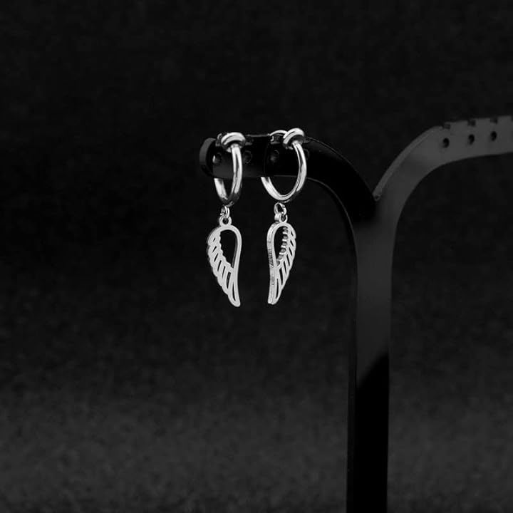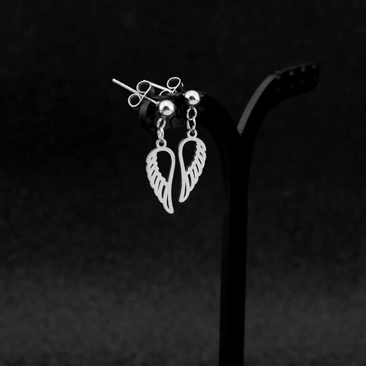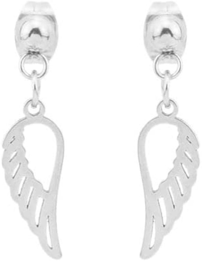 「デザイン」天使の羽がモチーフの可愛い垂れ下がりのスタッドピアス、リング付きイヤリングの両耳用2つ入りセット / 垂れ下がりのデザインなので動くたびにお洒落に揺れ動きお洒落さアップ。