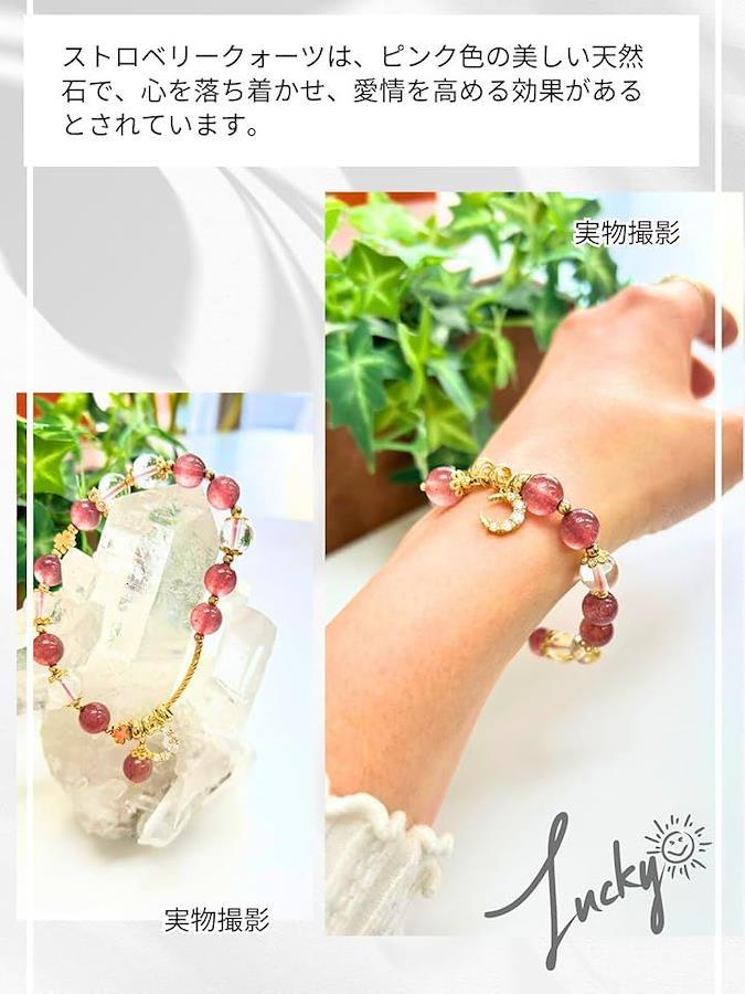 ストロベリークォーツは、ピンク色が美しい石で、優しさや愛情を象徴します。