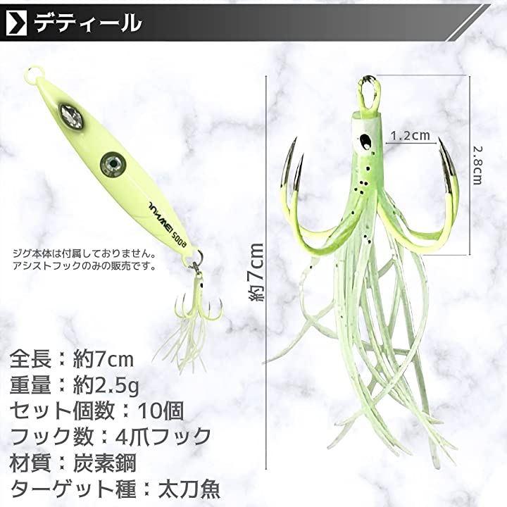 ・「セット内容」太刀魚フック(夜光タコベイト付)10個セット