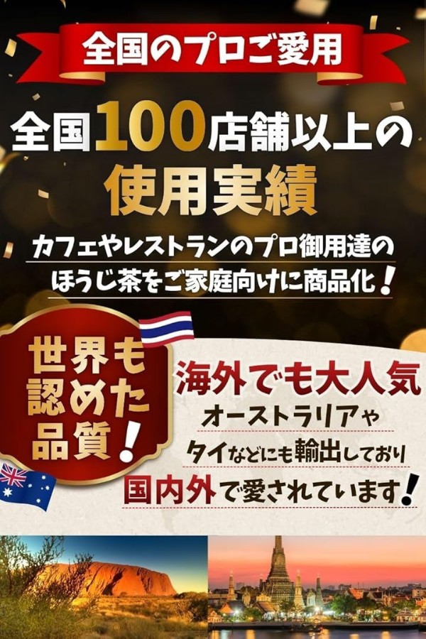 「世界も認めたほうじ茶」本商品と同じ原料のほうじ茶は、海外でも大人気であり、オーストラリアやインドネシアなど世界各国にも輸出しており、日本だけでなく世界中で愛されています。