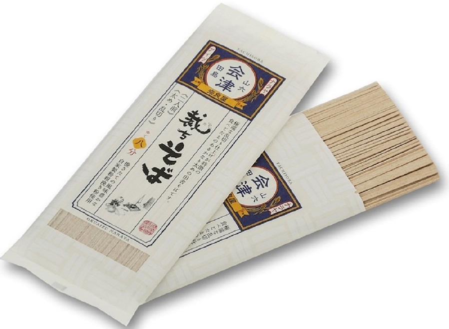 風味豊かな自社製粉粗挽きそば粉を使用し、幅の太い麺と細い麺の3種類の太さが異なる麺が混じっている田舎風乱切りそば。茹で期間は11分ほどかかりますが食べ応えのある麺です。温かいかけそばにしてもしっかりした食感が残り田舎のおばあさんを思い出すほど特徴が明確で、弊社ではリピーターの多い商品です。