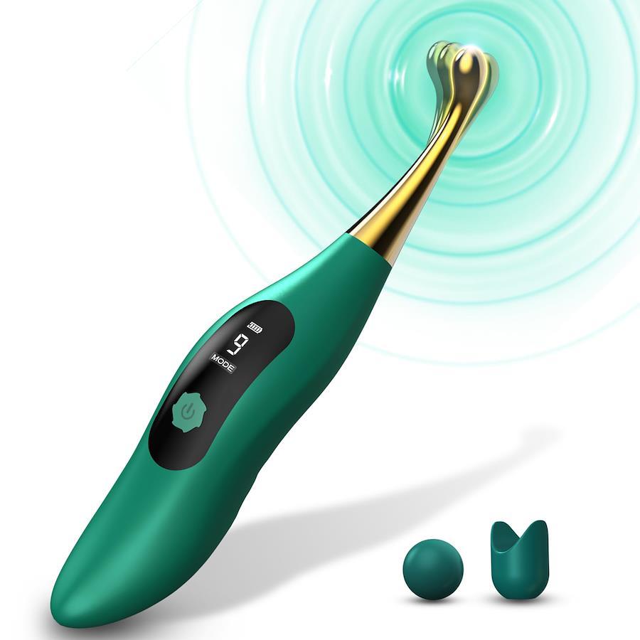 女性用クリトリスバイブレーター。Gスポット、クリトリス、乳首を刺激する9モードバイブレーター。LCDディスプレイ付き。マグネット充電式。防水仕様。カ