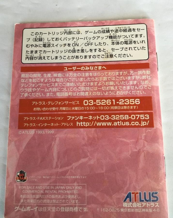女神転生外伝 ラストバイブル2 カラー対応版 DMG-P-A2LJ ATLUS ゲームボーイソフト ATLUSDMG-P-A2LJ女神転生外伝 ラストバイブル2 カラー対応版