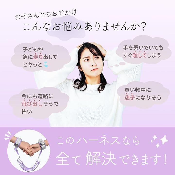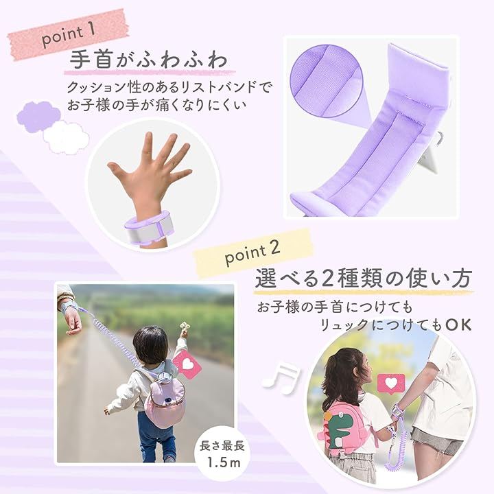 「ママたちの声から生まれたリストバンド式ハーネス」 「ハーネスタイプは着脱が面倒」「リュック型だとお気に入りのリュックが使えない」 「冬の厚着の上からは付けづらい」──そんなお悩みを解消するのがリストバンド式ハーネスです。