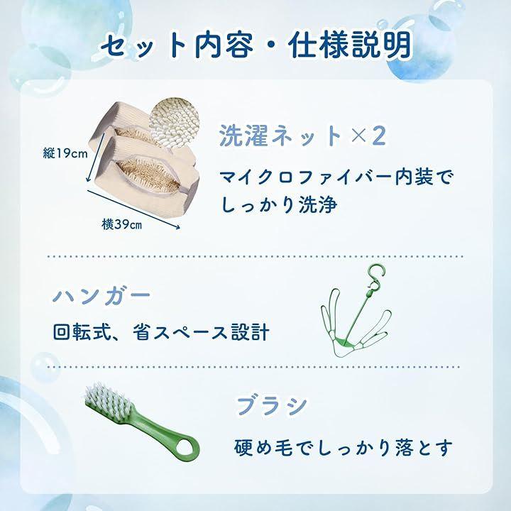 セット内容:洗濯ネットx2、ブラシx1、靴干しハンガーx1