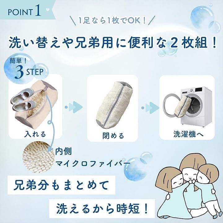子どもの上履き洗いに特化した「3点セット」が登場。 洗濯ネット(2枚):内側はマイクロファイバー素材で、汚れやニオイもスッキリ。1足ずつ洗えて衛生的。