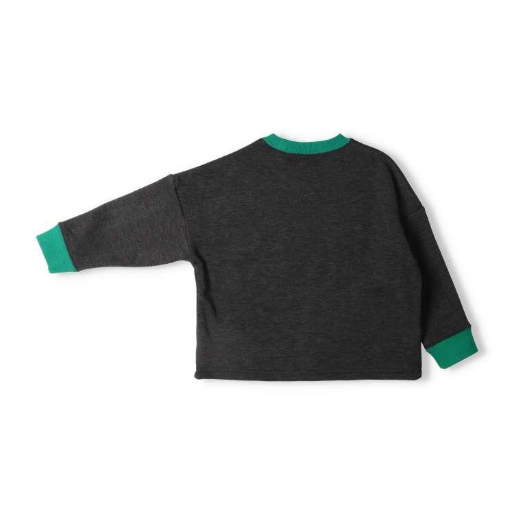 2枚の生地を貼り合わせたボンディング素材で暖かみのあるトレーナー、スウェット。立体感のあるNのアップリケ、衿ぐりと袖の配色がポイント!肩落ちのワイドシルエット。(ベビーサイズのみ肩ボタン仕様になります。)【アイテム】トップス カジュアル お洒落 オシャレ かっこいい かわいい 可愛い 普段着 デイリーウェア お出かけ着 お外着 お外遊び着 子ども服 こども服 男児 男の子 ボーイズ キッズ ベビーサイズ トドラーサイズ 幼稚園 保育園 小学校 通園 通学 小学生 2024年秋冬物新作 丸高衣料 ロングスリーブ 長袖 ブラック 黒色 グレー 灰色 クレセント