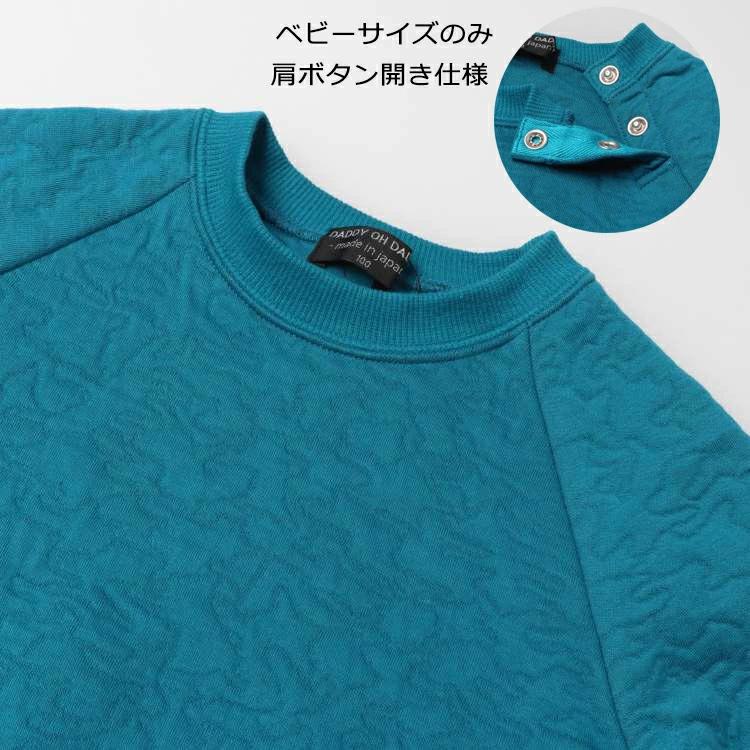 安心の【日本製】でギフトやプレゼントにもおすすめ!珍しい迷彩柄のニットキルトのトレーナー、スウェット。秋冬らしい中綿入りの暖かみのあるキルティング素材。同じデザインのスクールサイズ(140,150,160cm)はV52615になります。(ベビーサイズのみ肩ボタン仕様になります。)【アイテム】トップス カジュアル お洒落 オシャレ かっこいい かわいい 可愛い 普段着 デイリーウェア お出かけ着 お外着 お外遊び着 子ども服 こども服 男児 男の子 ボーイズ キッズ ベビーサイズ トドラーサイズ 幼稚園 保育園 小学校 通園 通学 小学生 2024年秋冬物新作 丸高衣料 ロングスリーブ 長袖 ブラック 黒色 ターコイズブルー 青色 ダディオダディ コットン100% 綿100% made in Japan メイドインジャパン 国内生産