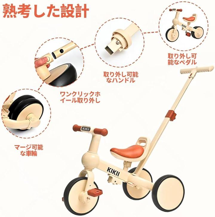 KIKII子供用三輪車は、三輪車、バランスバイク、従来の自転車モードに簡単に移行できます。