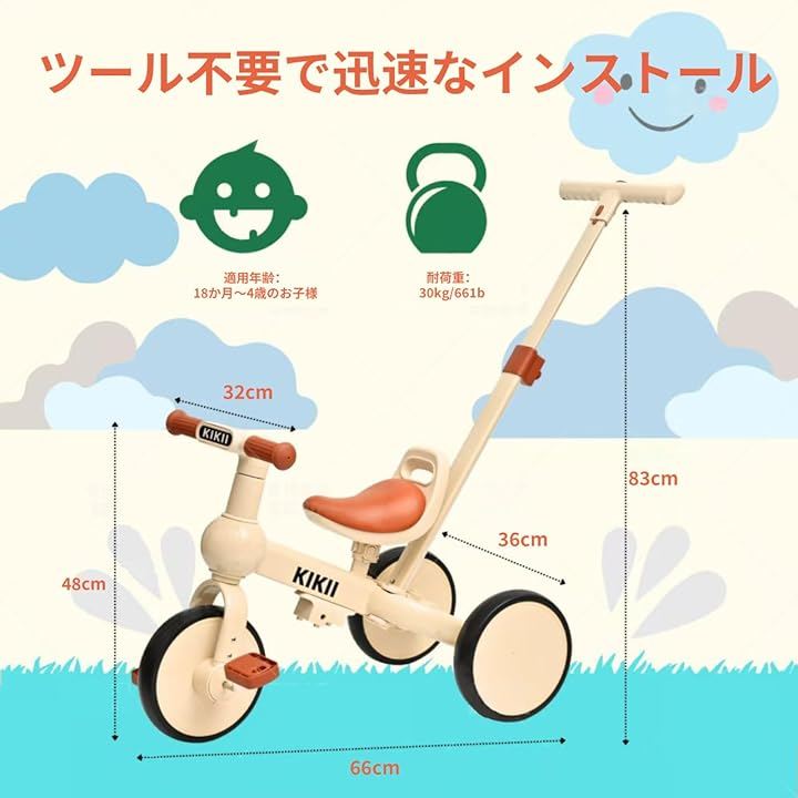 快適さと便利さ:KIKII子供用三輪車は人間工学に基づいて設計されており、快適なシートと小さな底部の湾曲で持ち運びが簡単です。