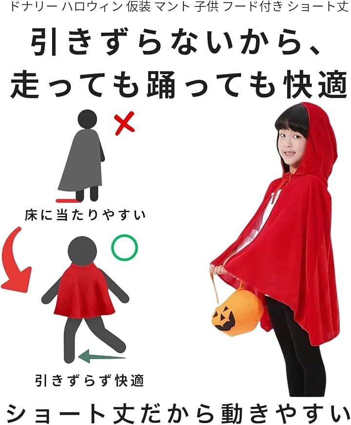 「たくさんの記憶を残しましょう。」 フード付きマントは、ハロウィンだけでなくクリスマス会や誕生日イベントなど、季節を超えて使えるコスチュームです。