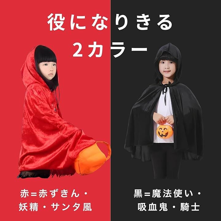 子供 コスプレ マント フード付き ショート丈 ケープ ハロウィン 仮装 衣装 男女兼用 女の子 男の子 魔女 学芸会 発表会 クリスマス