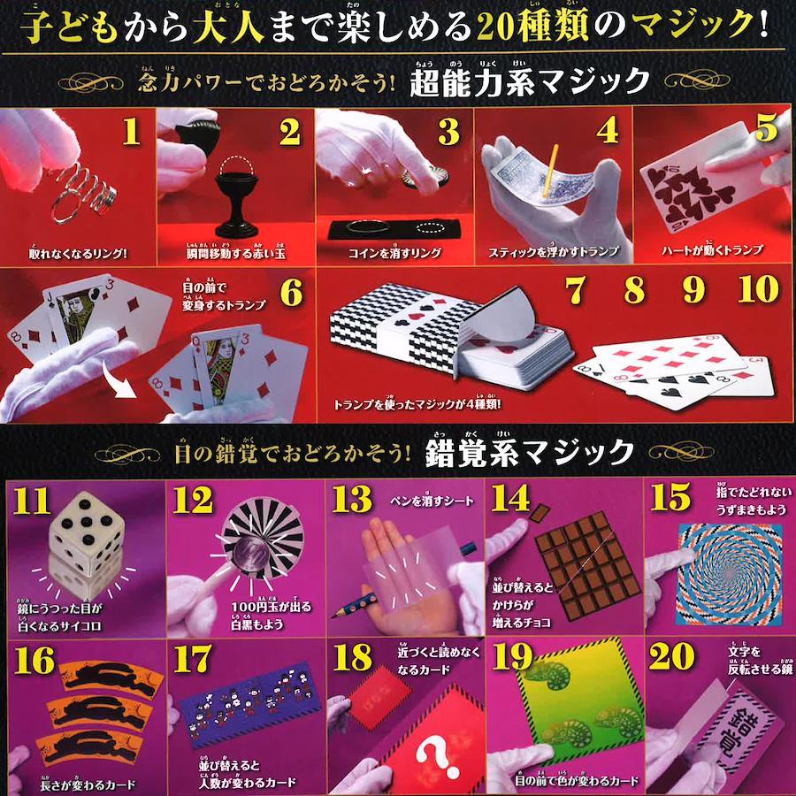 子どもから大人まで楽しめる20種類のマジックキット 誰でもかんたんにマスターできます! 念力パワーでおどろかそう!超能力系マジック 目の錯覚でおどろかそう!錯覚系マジック