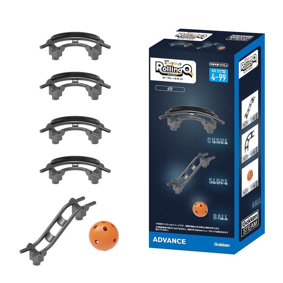 遊び方無限のニューブロックは、お子さまの「創造性」を刺激し、豊かな「経験」をつくります。 ニューブロックの特長 ・やわらかくて大きいから安心・・・やわらかいから踏んでも投げても痛くない、大きいから誤飲の心配のない安心設計。 ・創造力を育む特徴的な形・・・「つなぐ」「はさむ」「さしこむ」など様々な組み方ができ、創造力や認知力を育みます。 ・成長に合わせて長く遊べる・・・見立て遊びやごっこ遊び、大きな作品づくりまで1.5歳から小学生になっても遊べます。 「Gakkenニューブロック ローリングキュー カーブレールセット」はニューブロック専用の曲線レールセットです。 「Gakkenニューブロック ローリングキュー スタンダードセット」からの買い足しはもちろん、ボール入りなのでお手持ちの「ニューブロック」と組み合わせて、このセットからローリングキューを始めることも可能です。 ※本商品は単体で遊ぶことはできません。別売りのGakkenニューブロックと組み合わせて遊んでください。
