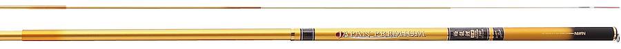 全長:5.40m継数:12本仕舞寸法:56cm自重:165g先径:1.0mm元径:23.8mm適合ハリス(号):0.8~1.5カーボン含有率:99%尻手管付口金リング(BAT)超微粒子ホログラムフレーク塗装オールゴールド特別塗装仕様