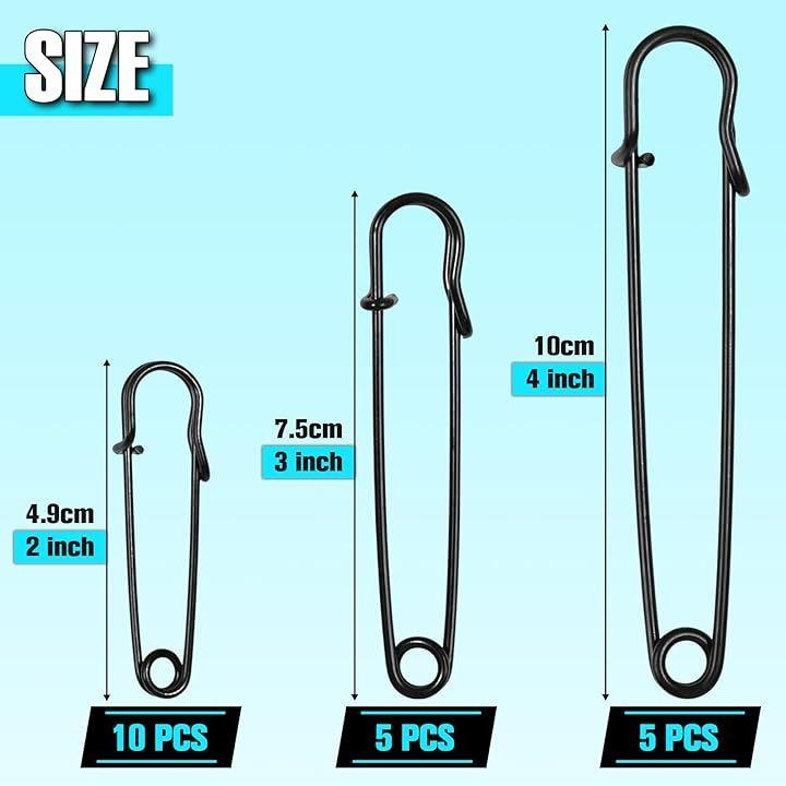 「セット内容」2インチ(10本入り)、3インチ(5本入り)、4インチ(5本入り)の3サイズ、丈夫で頑丈な安全ピン20本入り。