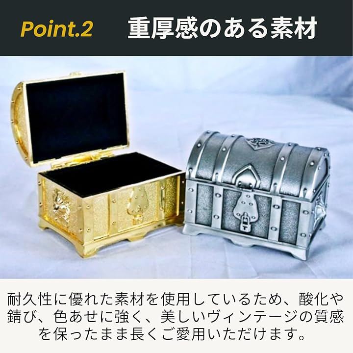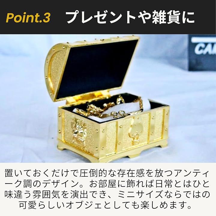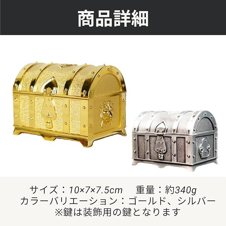 「商品詳細」サイズ:10x7x7.5cm 重量:約340g カラーバリエーション:ゴールド、シルバー *鍵は装飾用の鍵となります