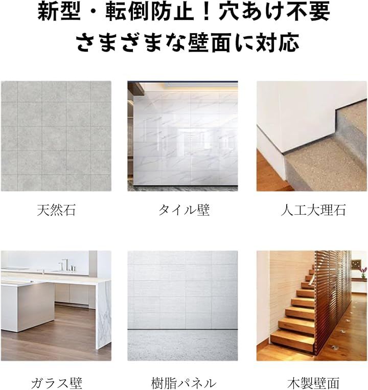 「穴開け不要タイプ」穴開け不要の画期的な耐震グッズ.壁を傷つけたくない賃貸でも心置きなくご使用頂頂けます。