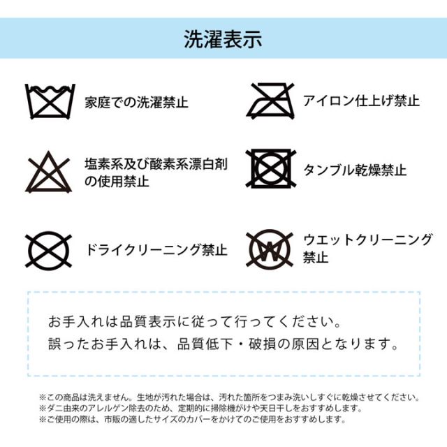 側生地=ポリエステル100%(ピーチスキン加工)詰め物=ポリエステル100%、ダニがいなくなるシート70g/m2セミダブル⇒巻き綿2.4kg/固綿1.8kg"