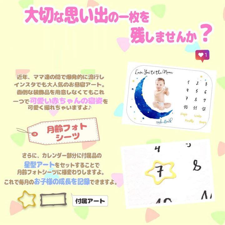 ・v「商品特徴」近年ママさんの間で大人気の寝相&お昼寝アートの登場です*この商品は月をモチーフにしたデザインで、月の上に赤ちゃんを寝かしつけてあげることで 可愛い写真が簡単に撮れちゃいます。