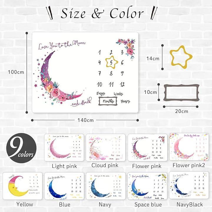 「サイズ」:100x140 cm 「付属」:星、長方形の装飾 「用途」:出産祝い、新生児プレゼント、百日記念撮影、寝相アート、ソファ毛布、ひざ掛けブランケットなど本当に幅広く使用できます。