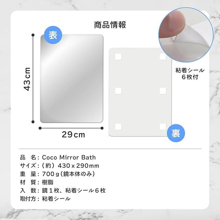 「商品基本仕様」ココミラーCocoMirror購入のお客様の要望におこたえして、浴室専用の割れない鏡、CocoMirror Bath を開発いたしました。