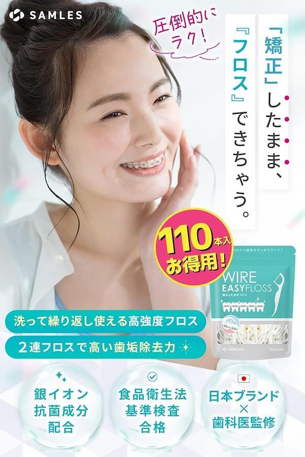 専門歯科医推奨 110本入 矯正用 フロス 洗って繰り返し使える x 2本糸で高い歯垢除去力食品衛生法クリア 抗菌成分配合