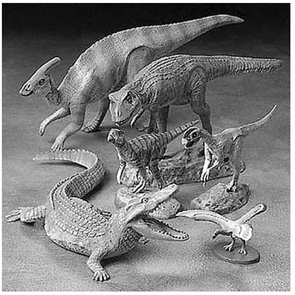 タミヤ 1/35 恐竜世界シリーズ No.07 小型恐竜セット プラモデル 60107 ティラノサウルスとパラサウロロフスは青年期の若々しい姿を再現。オビラプトルとヒプシロフォドンはユニークな小型恐竜です。現在までほとんど姿を変えずに生きてきたワニと、鳥の祖先といわれる始祖鳥もセットしました。