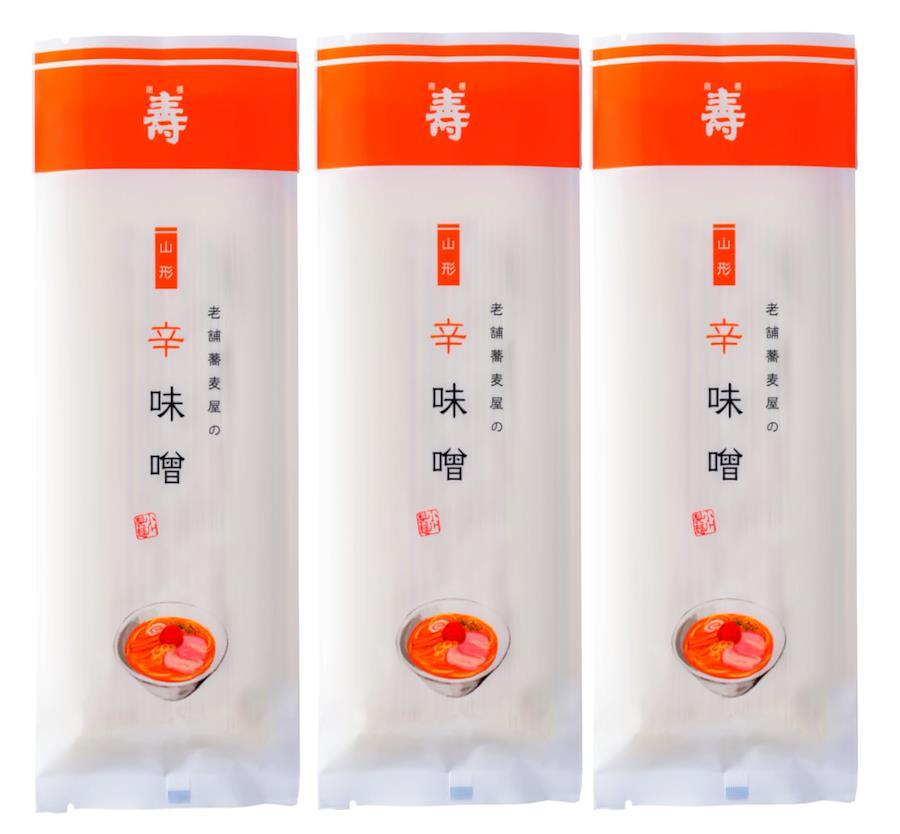 3営業日以内に発送≪新品未開封品≫山形「辛味噌」ラーメン。山形県の赤湯温泉が発祥の「からみそラーメン」に着想を得て、味わい深い味噌スープに辛味噌を溶かして食べていただく、老舗蕎麦屋の「山形 辛味噌ラーメンとして作り上げました。ご家庭で手軽に食べられて、常温で保存ができ、日持ちもする乾麺です。 味噌は山形県の白味噌をベースにした甘みと旨味が感じられる まろやかなスープに、深みとメリハリを与える辛味噌を添えて。しなやかな喉ごしの麺はスープがよく馴染むような複数の太さをミックスした乱切りに仕上げております。 山形県の南陽市には市役所に「ラーメン課」が存在するほど美味しいラーメンを提供する店が多く、数々のランキングで上位を獲得する有名店から老舗のラーメン店まで、その数何と60店舗。特に赤湯地区は約25店舗と多く、ラーメン激戦地としても有名です。その南陽市のラーメンは〇〇系というくくりには収まり切らないほど多彩なタイプがあり、百花繚乱の様相を呈しています。市役所ラーメン課発行のガイドブック「なんようしのラーメン」があるほどです。