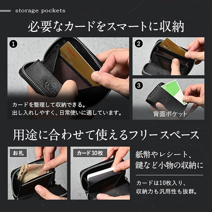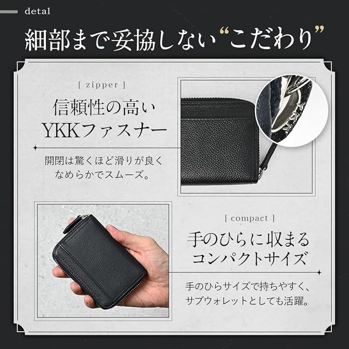 カードなら約10枚入る幅広サイズ メイン使いはもちろん、サブ財布やミニマル派にもぴったりのアイテムです。