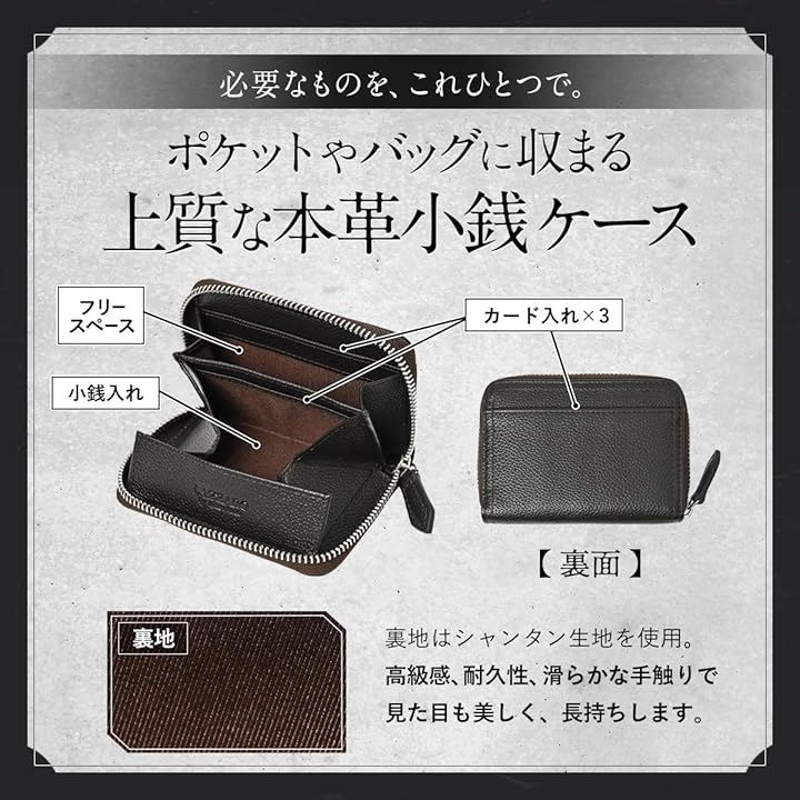 ・カードポケットx3枚分:よく使うカードをスマートに収納 ・フリースペース:紙幣・レシート・小物などを自由に収納。