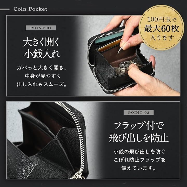 ・小銭入れ:大きく開いて中身が一目で見える視認性の高さ。