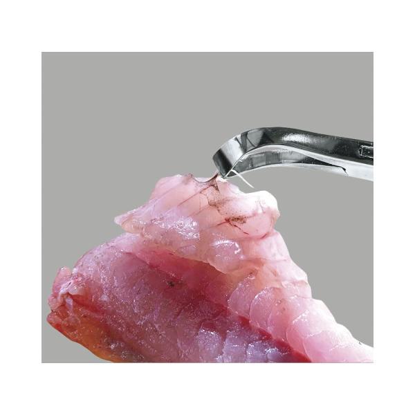 骨抜き専用プライヤー。専用の刃先と握りやすいハンドル形状。骨切れせずに抜きやすいので作業効率アップ。サビに強いステンレス製。骨を面でつかめる平刃と骨が見えやすい細刃の2ラインナップ。