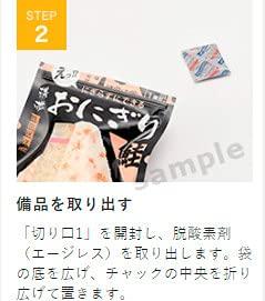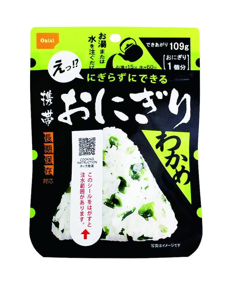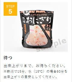 [特長] ●注水量:約67ml ●水で60分 ●湯で15分 ●お湯・水を入れるだけでできるにぎらない携帯おにぎり ●手を汚さずに食べられる3点カット方式